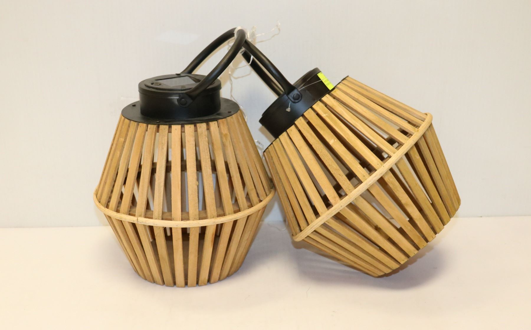 LOT OF 2 NEW SOLAR POWER WOODEN LANTERNS