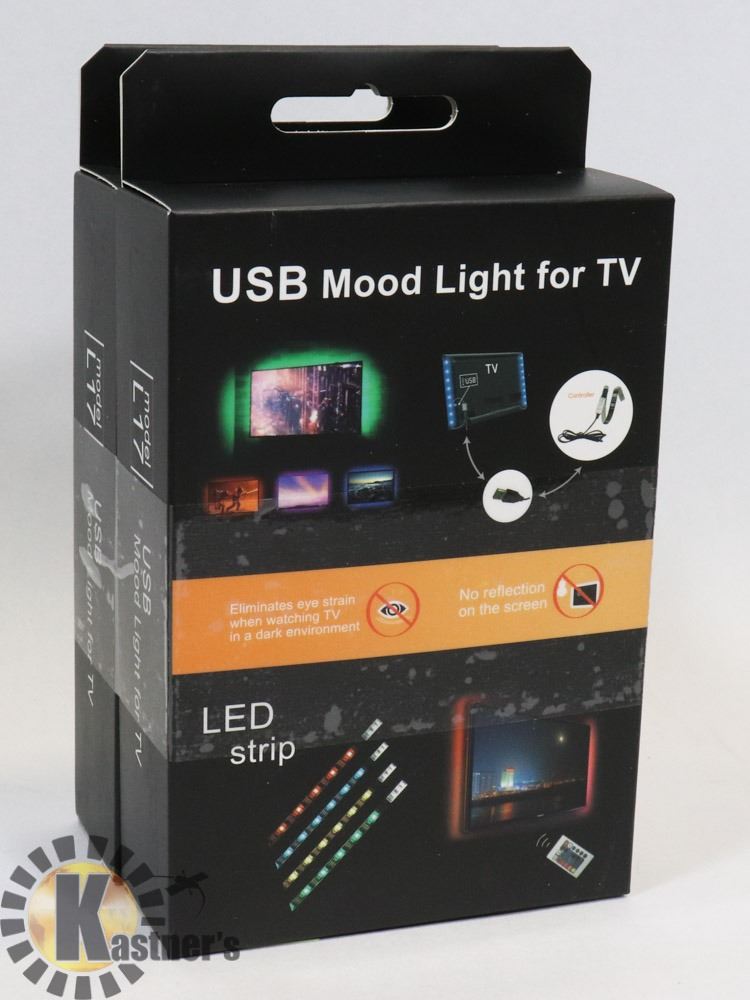 TV USB LED STRIP LIGHTS 1M RGB SMD 5050. 19 CHANGEABLE COLORS AMBIENT LIGHT KIT. RF REMOTE CONTROL. FOR TV, GAMING MONITOR, PC CASE, PICTURE FRAMES, UNDER DASH CAR LIGHTS, ETC.