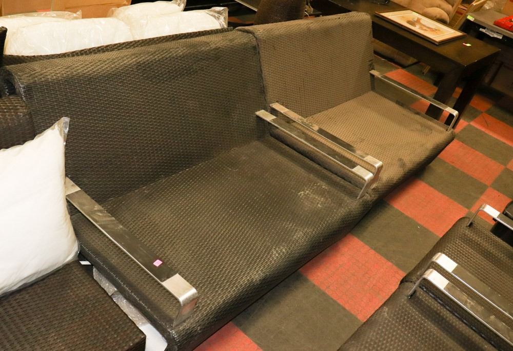 LOT OF 2 RATTAN STYLE LOVE SEATS NO CUSHIONS