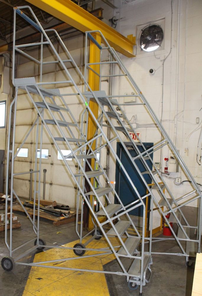 LOT OF 2 ROLLING METAL SAFETY LADDER