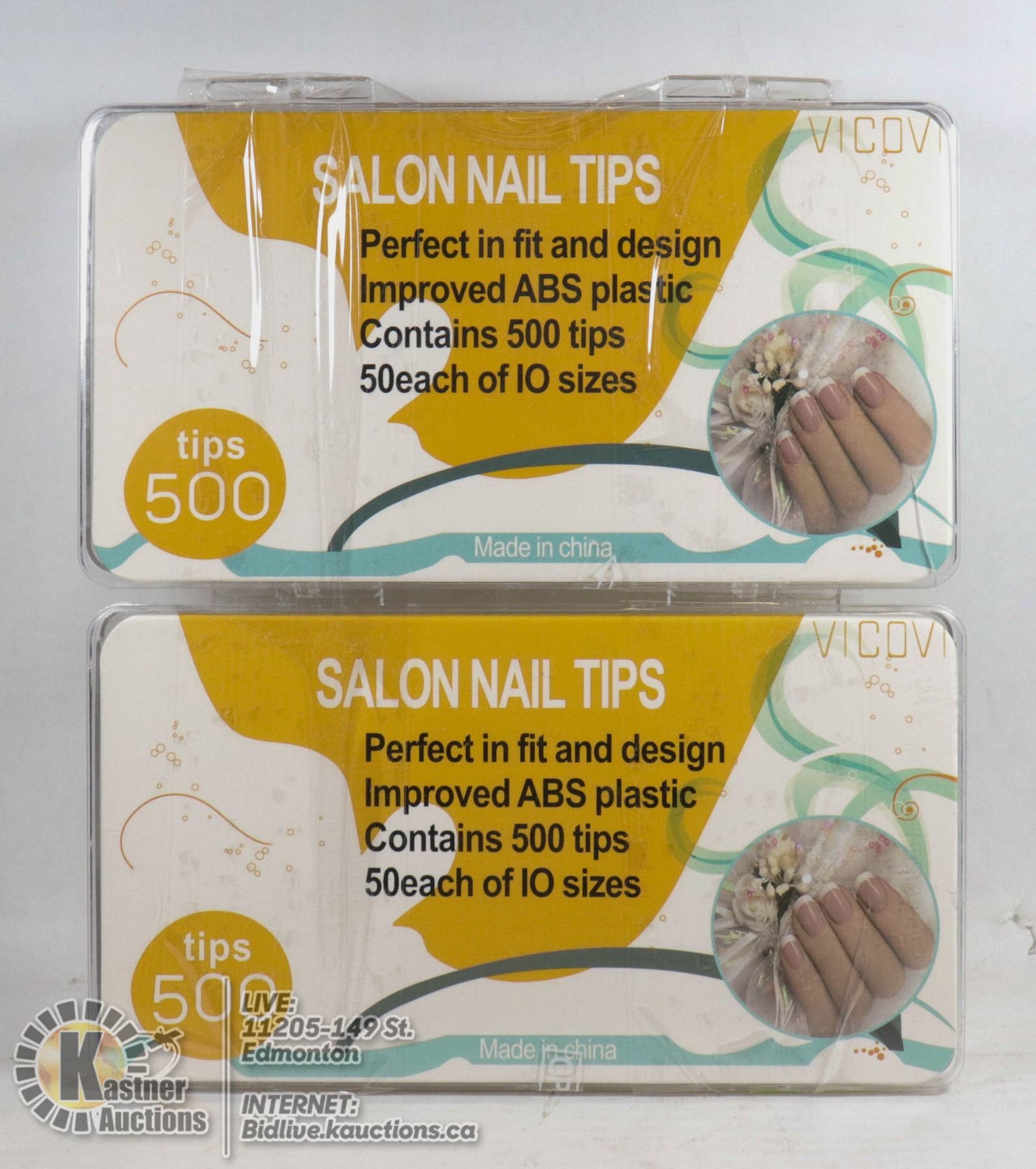 LOT OF 2 SALON NAIL TIP KITS 500 TIPS 50 EACH OF 10 SIZES
