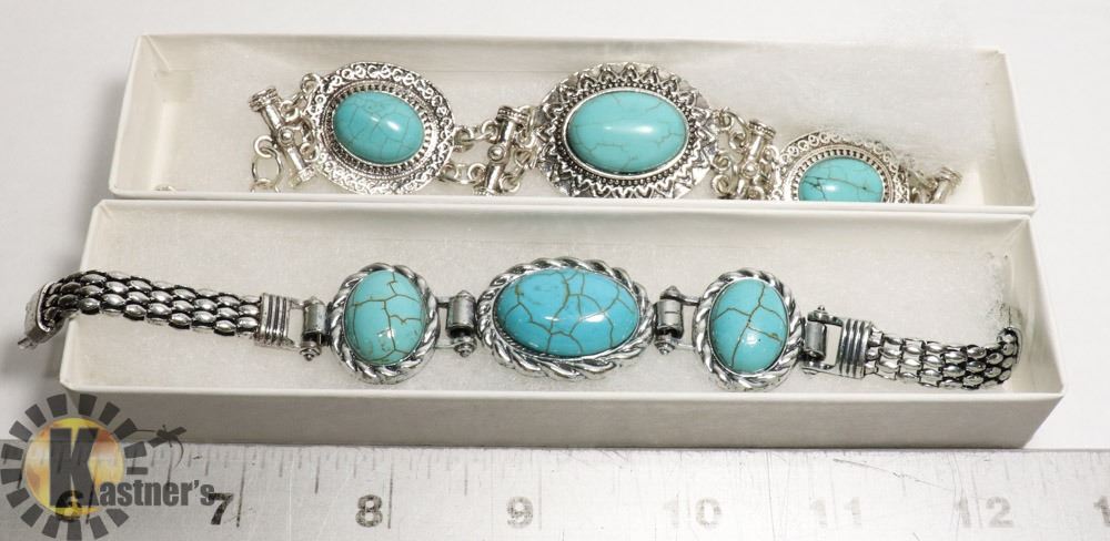 LOT OF 2 STABLIZED TURQUOISE SILVER TONE BRACELETS