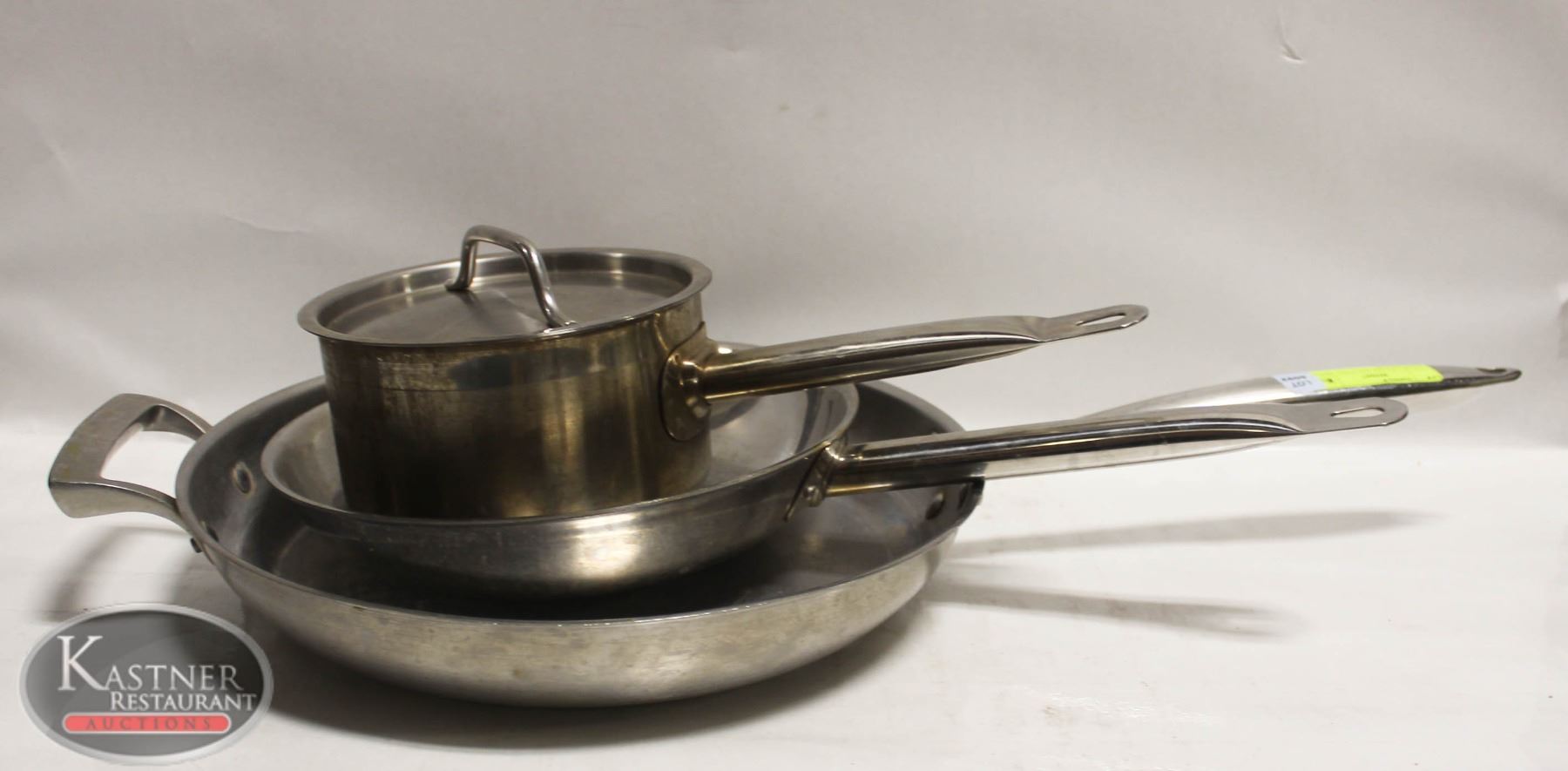 2 QUART SAUCEPAN. FRYING PANS ARE 13" & 10"