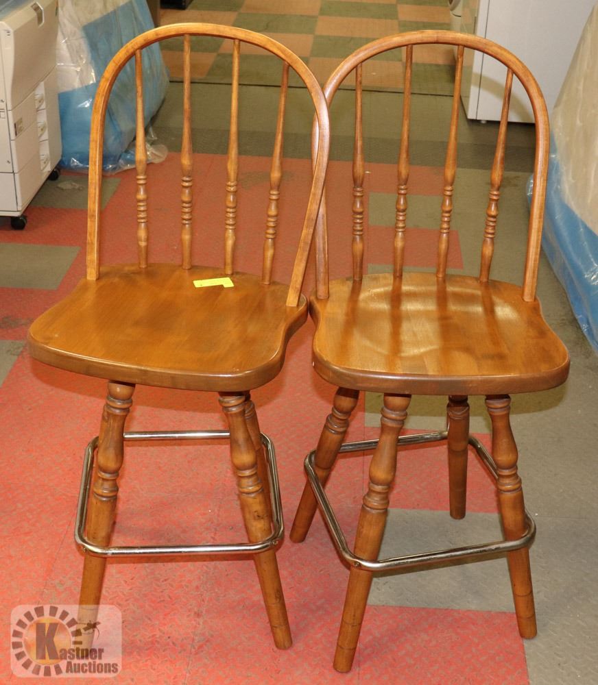 LOT OF 2 SWIVEL STOOLS WITH BACKS. SOLID WOOD.