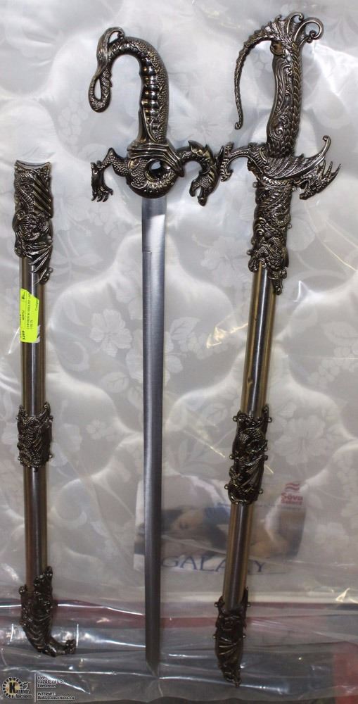 LOT OF 2 SWORDS W/ SHEATHS AND DRAGON HILTS