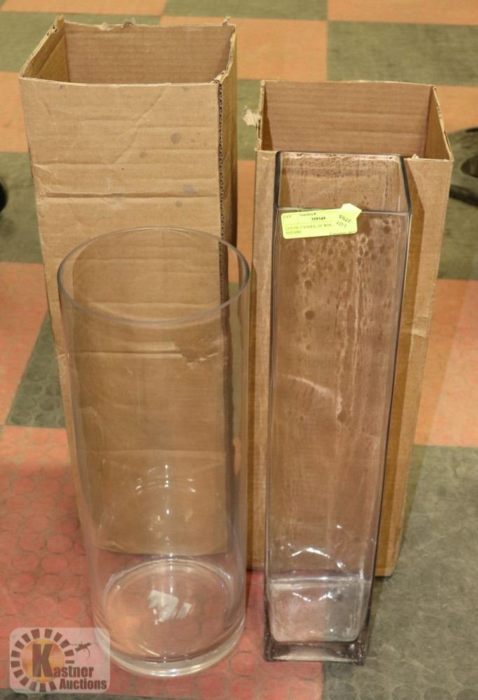 LOT OF 2 VASES, 10" ROUND, 20" SQUARE