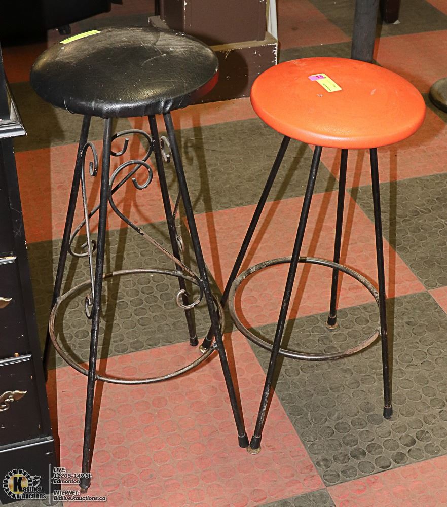 LOT OF 2 VINTAGE METAL BASE STOOLS. FURNITURE