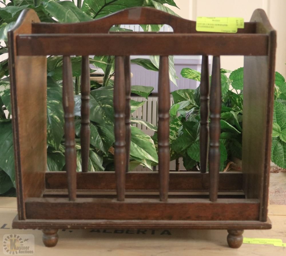 LOT OF 2 WOOD NEWSPAPER STANDS/RACKS