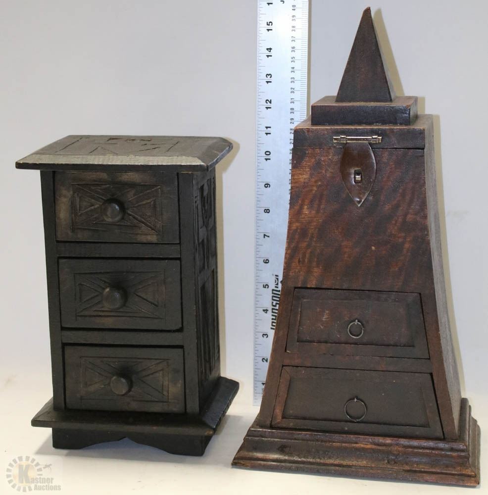 LOT OF 2 WOODEN HANDCARVED TRINKET BOXES