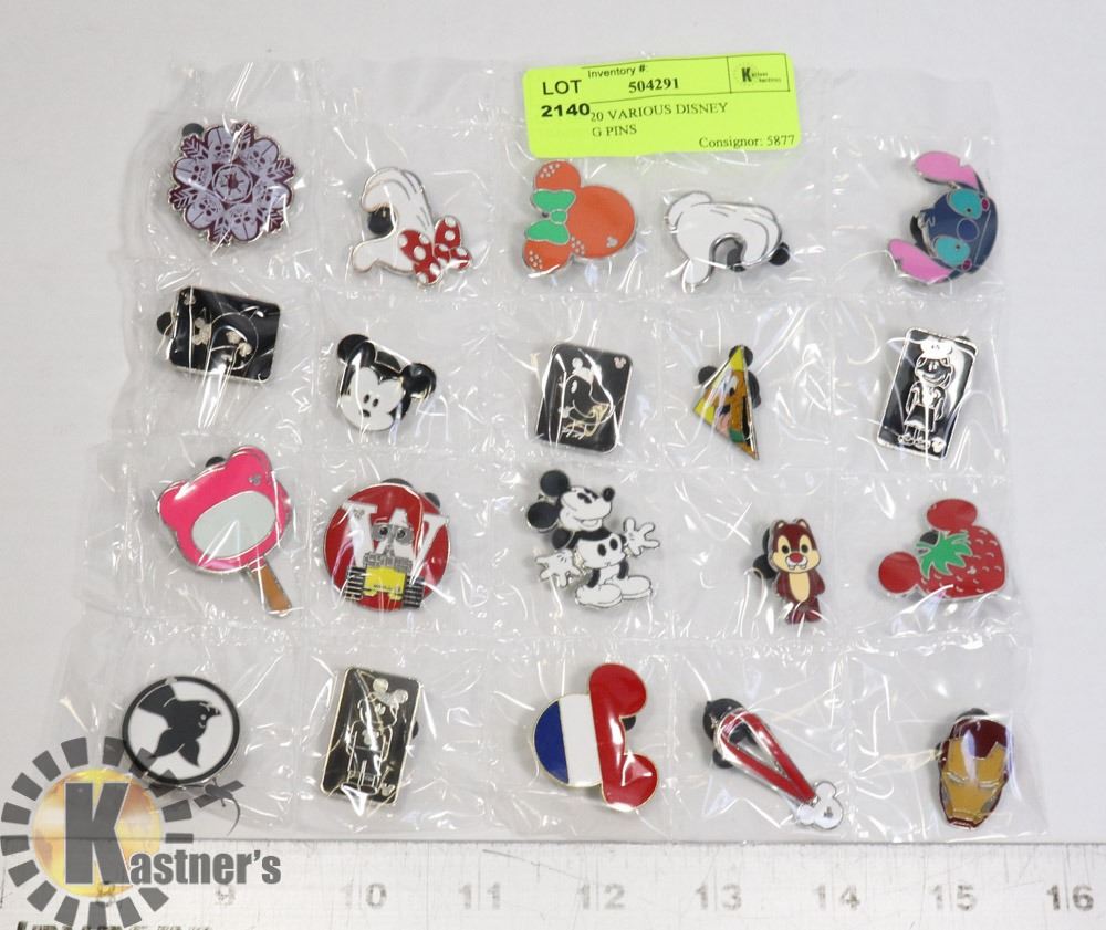 LOT OF 20 VARIOUS DISNEY TRADING PINS