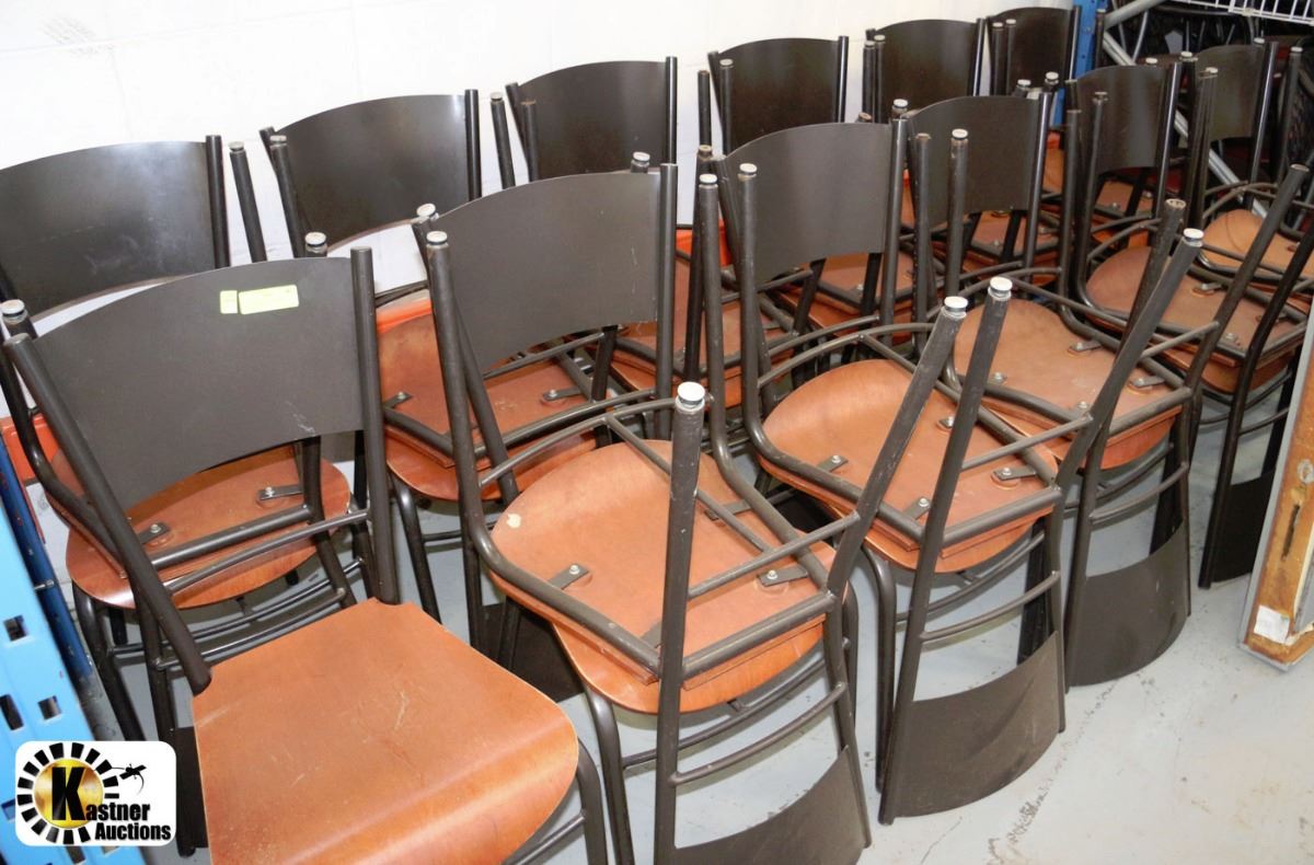 LOT OF 23 METAL CHAIRS WITH WOODEN SEAT