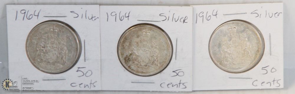 LOT OF 3- 1964 CANADIAN SILVER 50 CENT PIECES