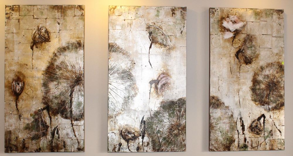 LOT OF 3 ABSTRACT CANVAS PAINTINGS 31.5" X 59"