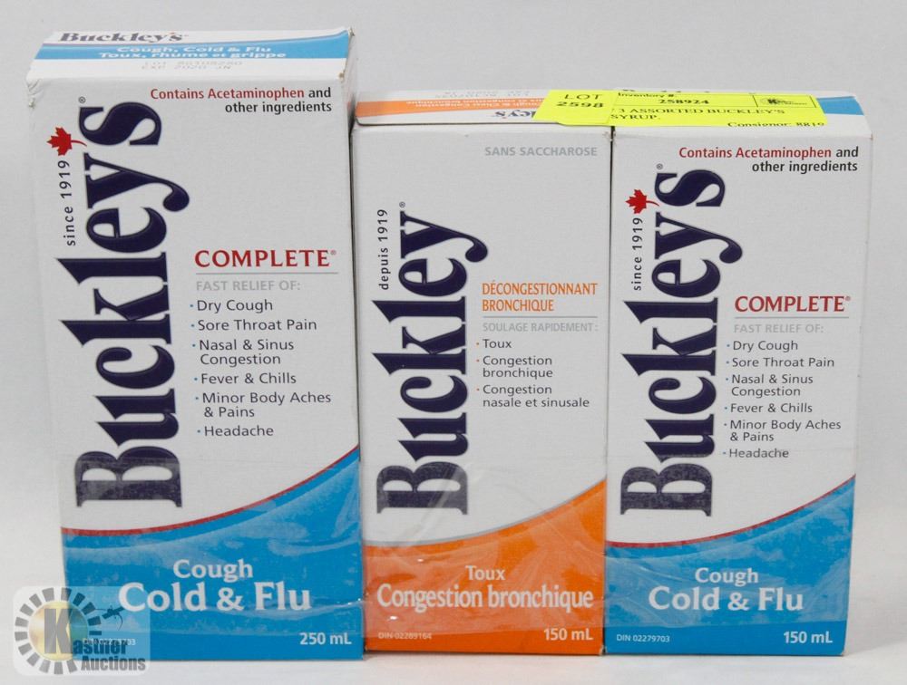 LOT OF 3 ASSORTED BUCKLEY'S COUGH SYRUP.