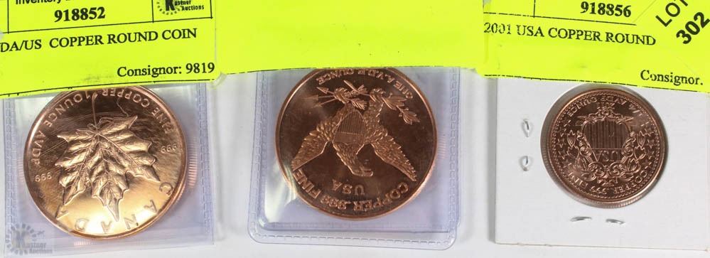 LOT OF 3 ASSORTED COPPER ROUNDS