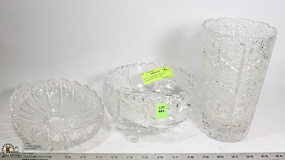 LOT OF 3 ASSORTED CRYSTAL GLASS BOWLS AND VASE