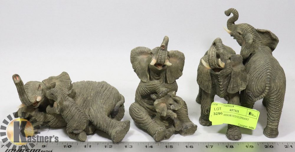 LOT OF 3 ASSORTED ELEPHANT STATUES