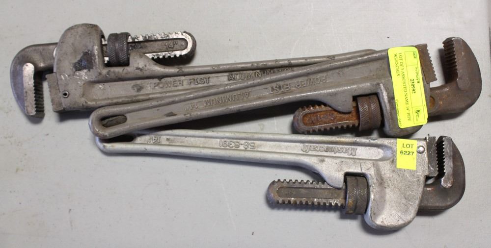 LOT OF 3 ASSORTED NAME 14" PIPE WRENCHES
