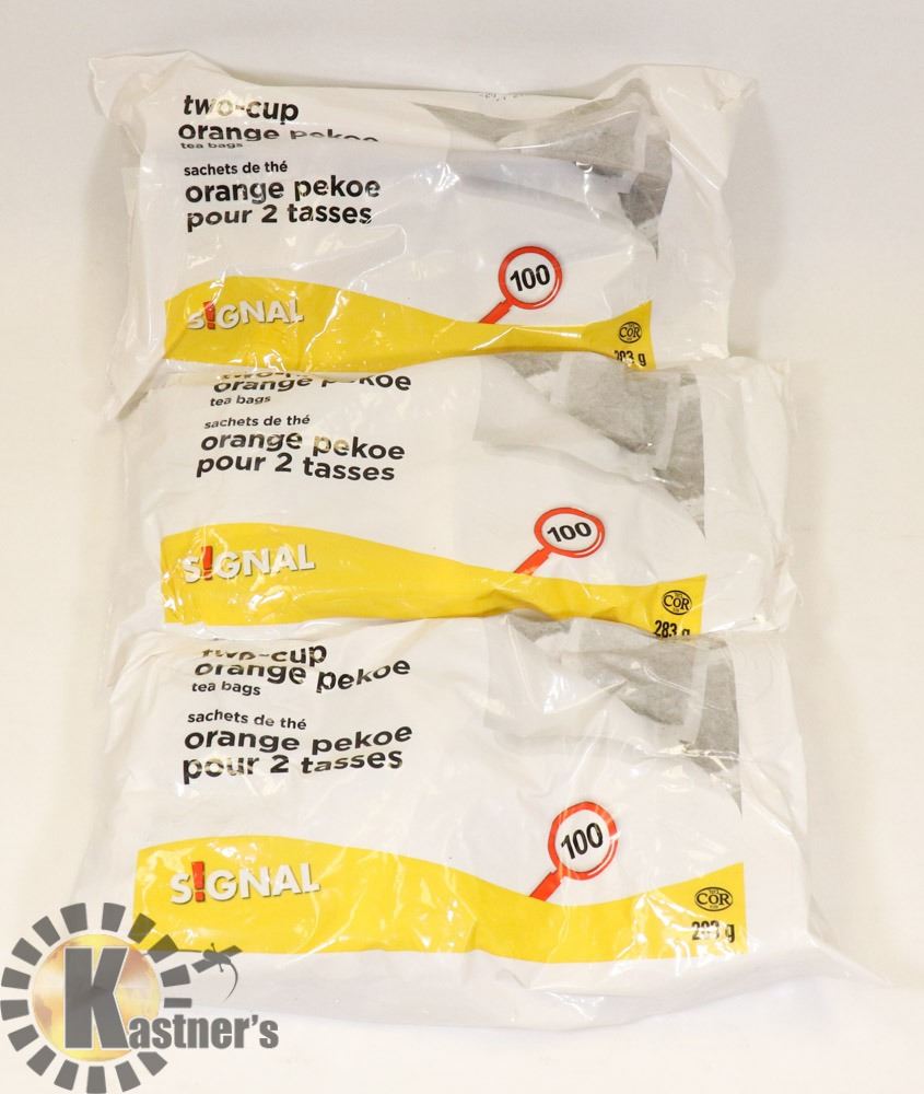 LOT OF 3 BAGS OF ORANGE PEKOE TEA BAGS-100 PER BAG