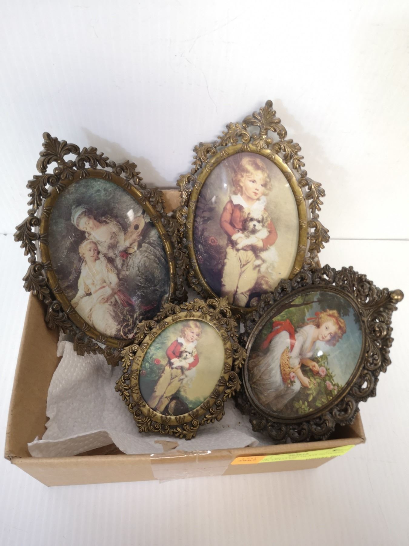 LOT OF 3 BEVELED GLASS PICTURES, 1 IS NOT BEVELED