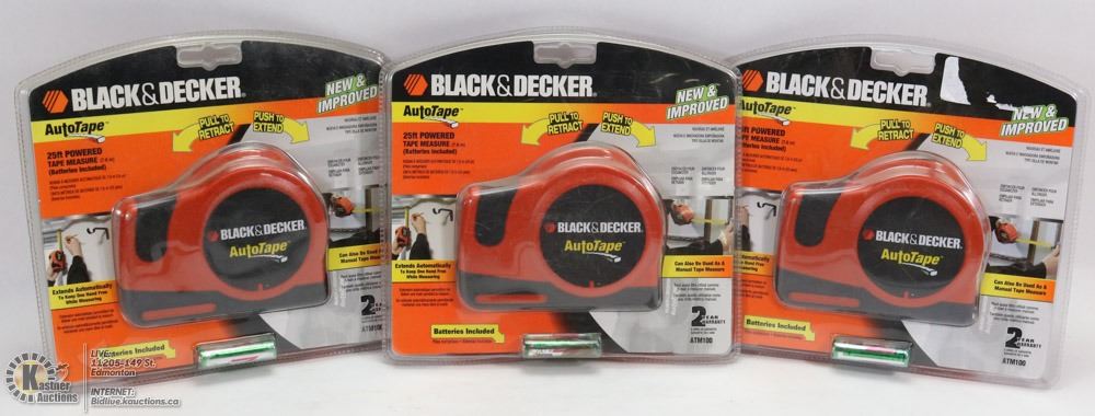 LOT OF 3 BLACK & DECKER 25' POWERED TAPE MEASURES