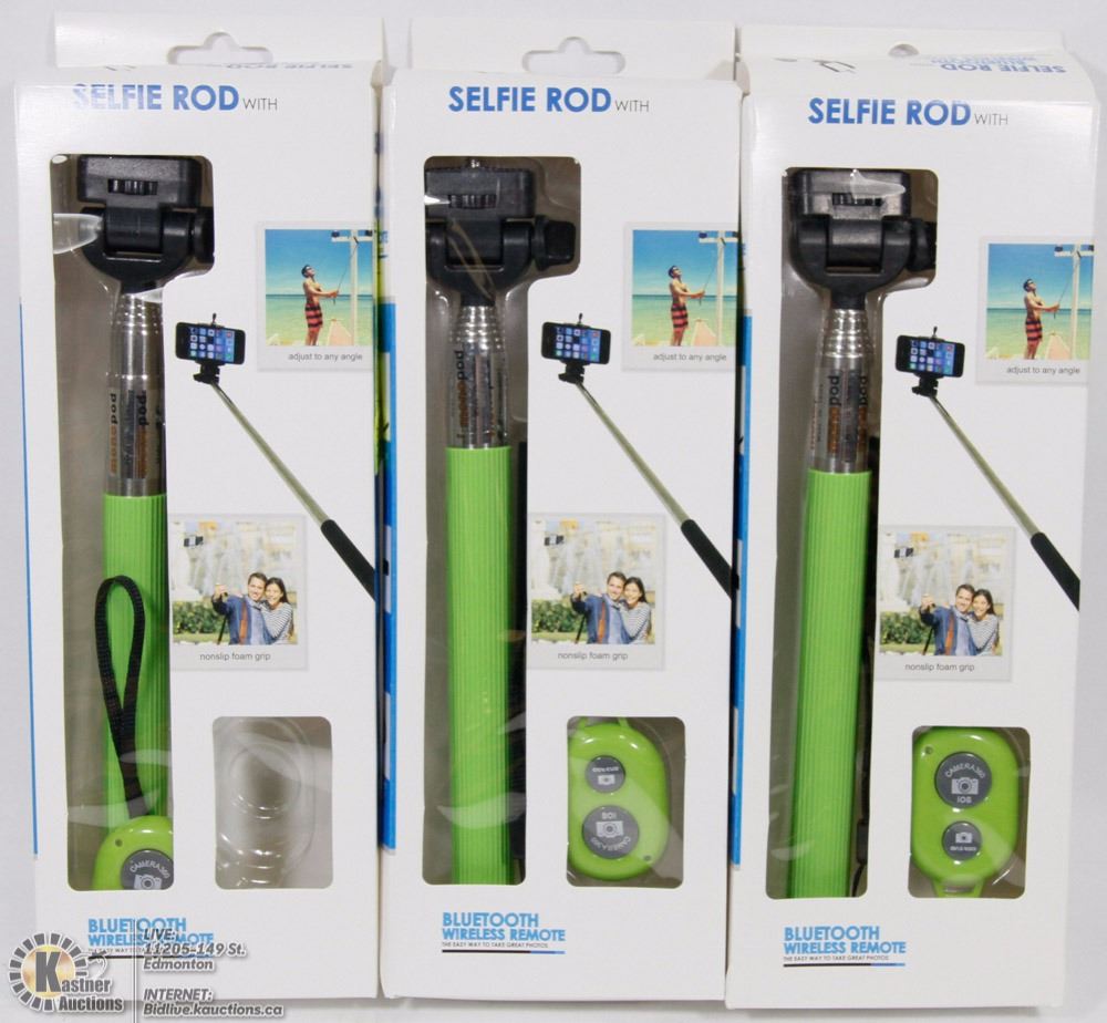 LOT OF 3 BLUE TOOTH WIRELESS REMOTE SELFIE RODS.