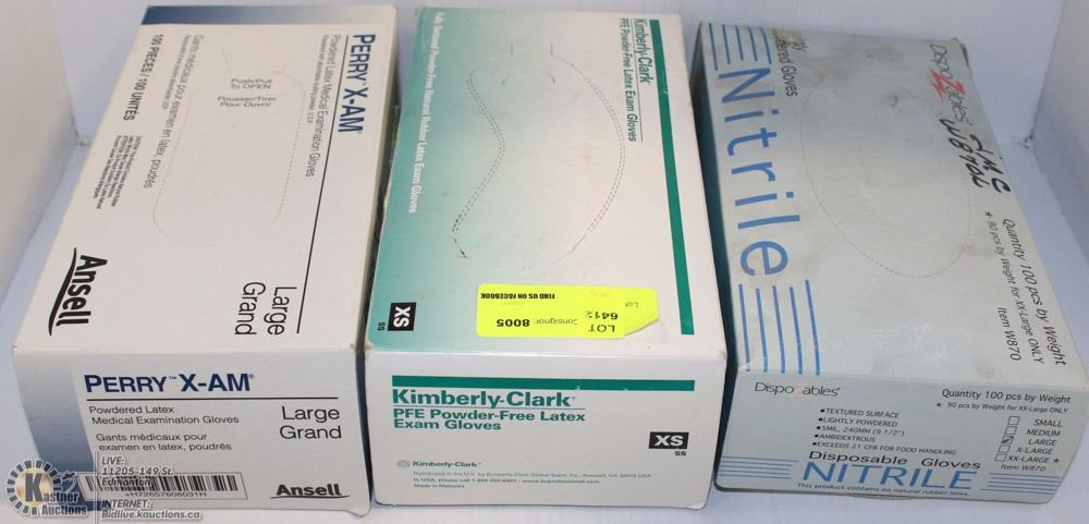 LOT OF 3 BOXES OF ASST SIZE LATEX GLOVES