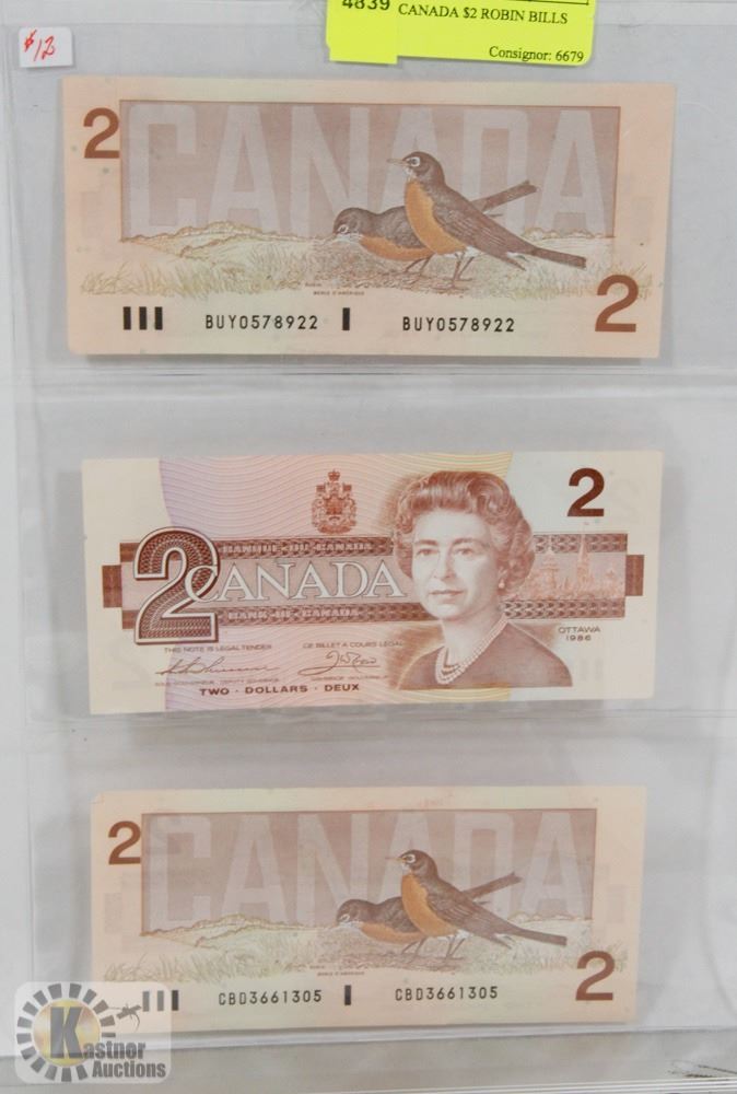 LOT OF 3 CANADA $2 ROBIN BILLS
