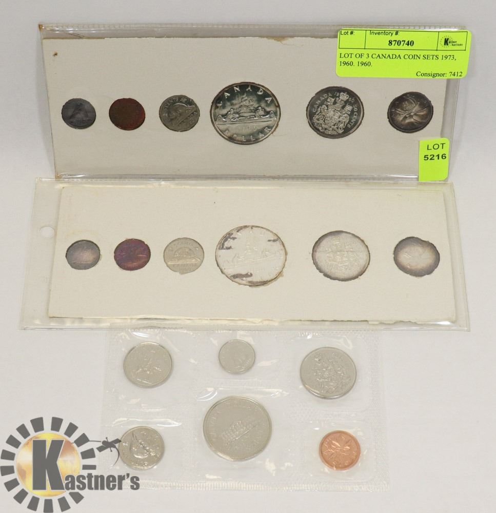 LOT OF 3 CANADA COIN SETS 1973, 1960. 1960.