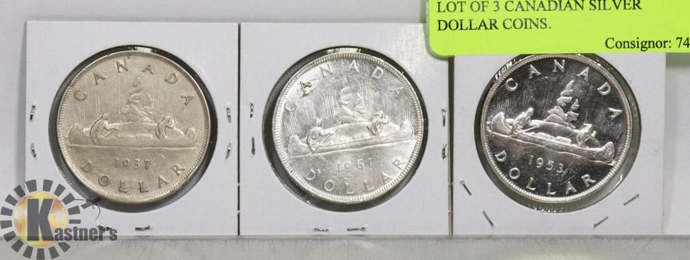 LOT OF 3 CANADIAN SILVER DOLLAR COINS.