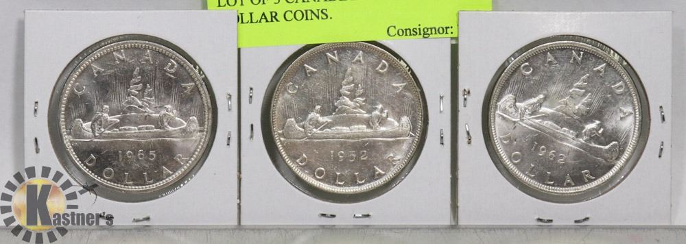 LOT OF 3 CANADIAN SILVER DOLLAR COINS.