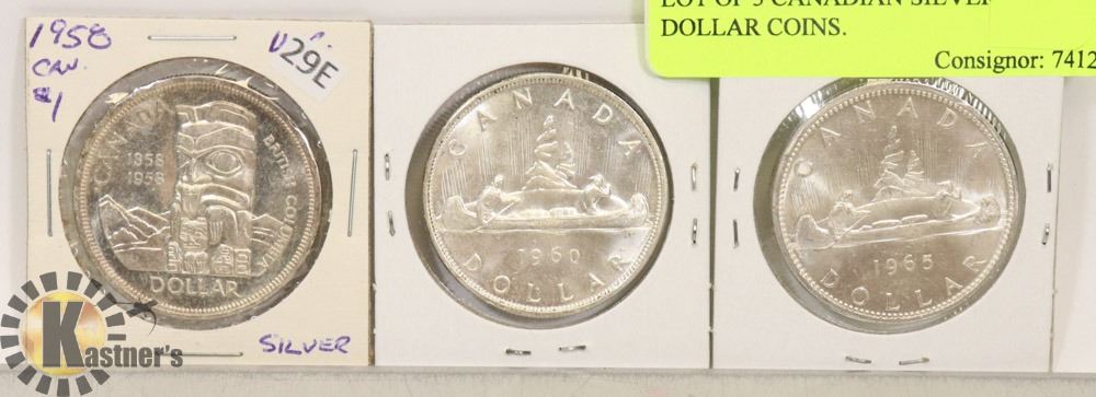 LOT OF 3 CANADIAN SILVER DOLLAR COINS.