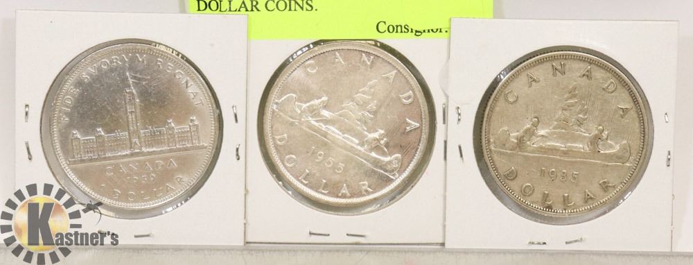 LOT OF 3 CANADIAN SILVER DOLLAR COINS.
