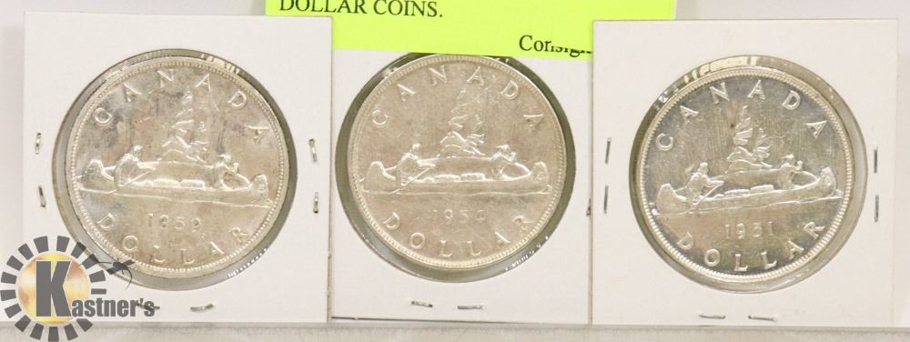 LOT OF 3 CANADIAN SILVER DOLLAR COINS.