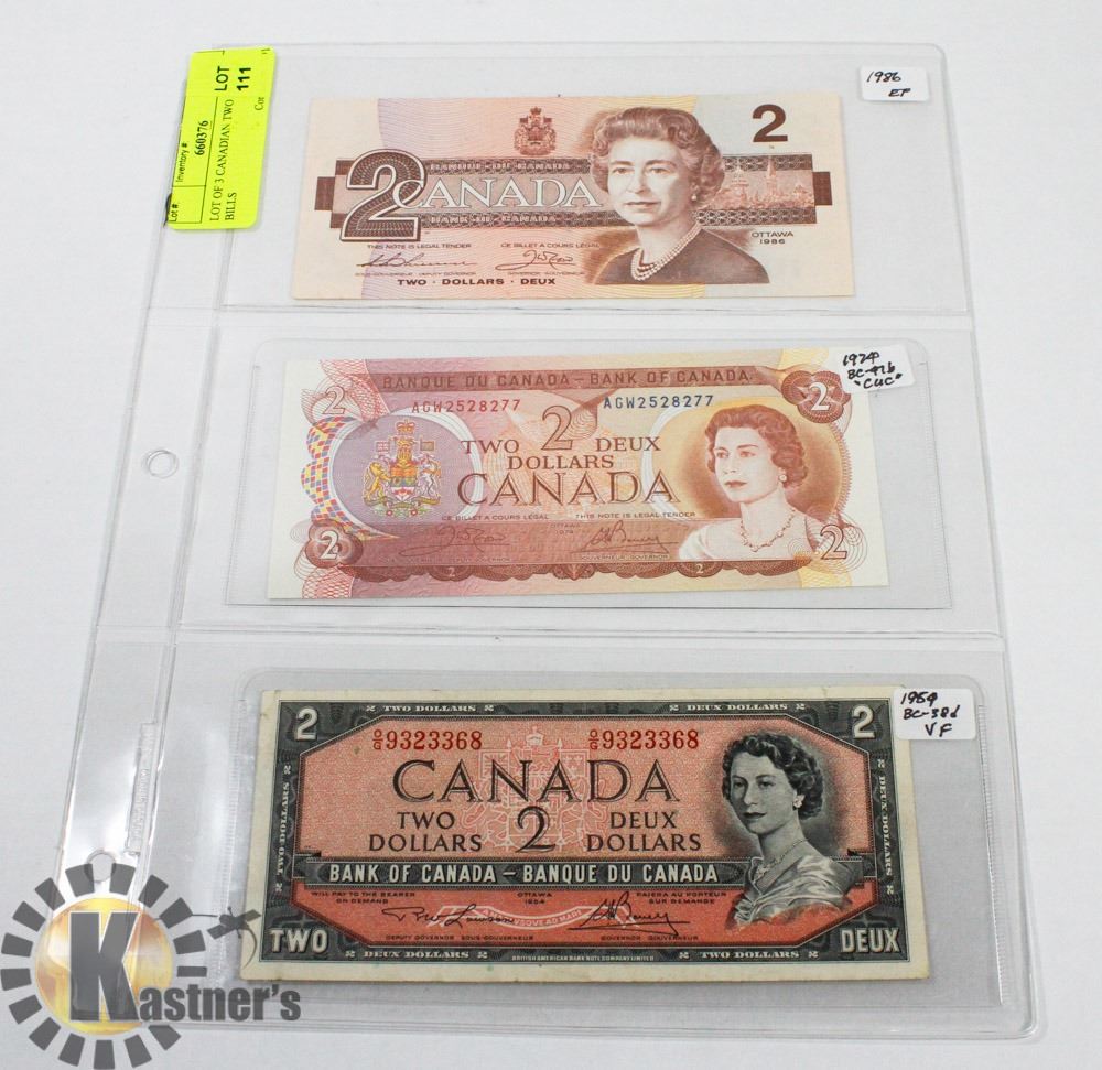 1954, 1974 AND 1986 TWO DOLLAR BILLS - CURRENCY/NUMISMATICS