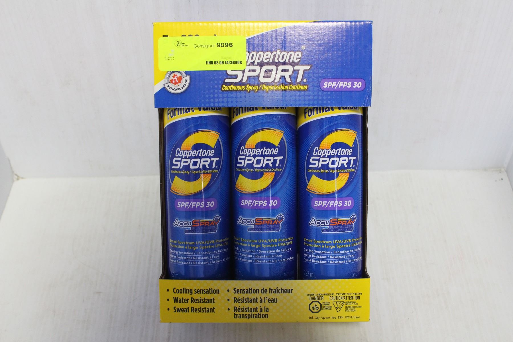 LOT OF 3 CANS OF COPPERTONE SPORT SUNSCREEN 30SPF
