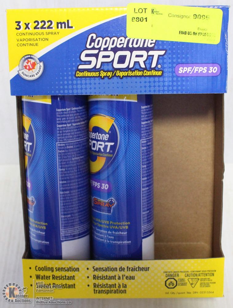 LOT OF 3 CANS OF COPPERTONE SPORT SUNSCREEN 30SPF