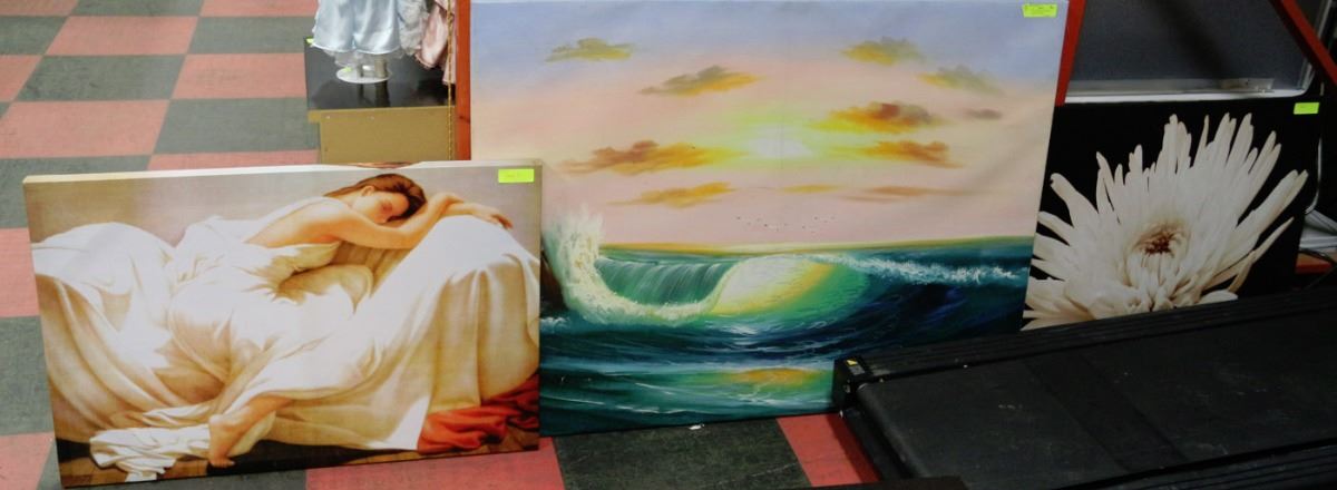 LADY SLEEPING AND FLOWER BEACH SCENE:36"X47,LADY 35"X24",FLOWER 32"X26"
