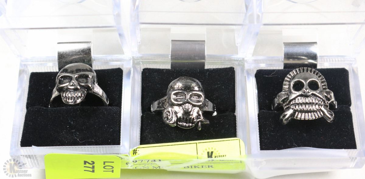 LOT OF 3 FASHION MENS BIKER RINGS SIZE 9 AND 7.5