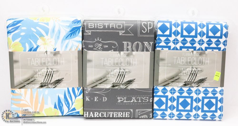 LOT OF 3 FLANNEL BACK TABLECLOTHS