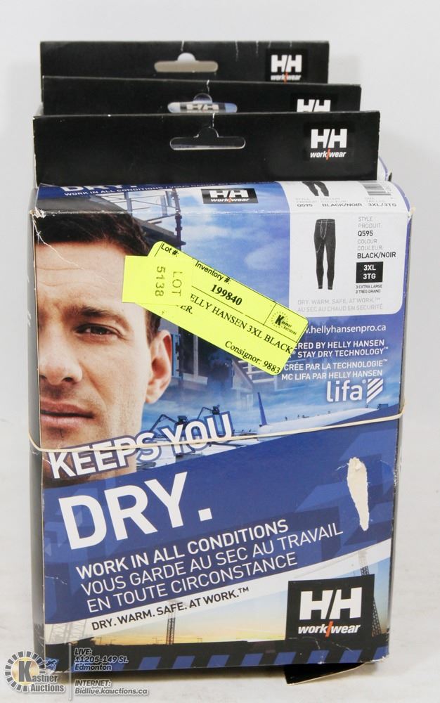 LOT OF 3 HELLY HANSEN 3XL BLACK BASE LAYER.