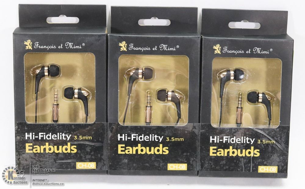 LOT OF 3 HI FIDELITY 3.5MM EARBUD HEADPHONES