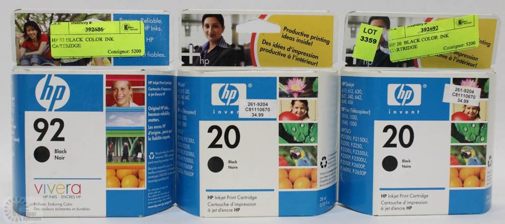 LOT OF 3 HP 20 & 92 PHOTO INK CARTRIDGES