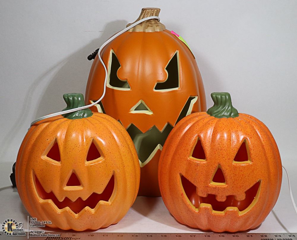 LOT OF 3 JACK'O'LANTERS, 1 WITH ELECTRICAL LIGHTUP