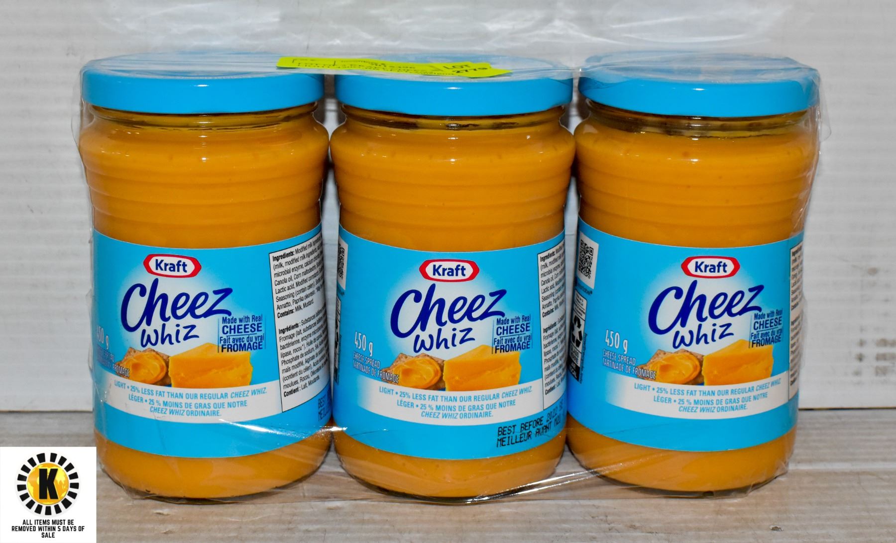 LOT OF 3 KRAFT CHEEZ WHIZ LIGHT,450G,BB SEPT 7/22