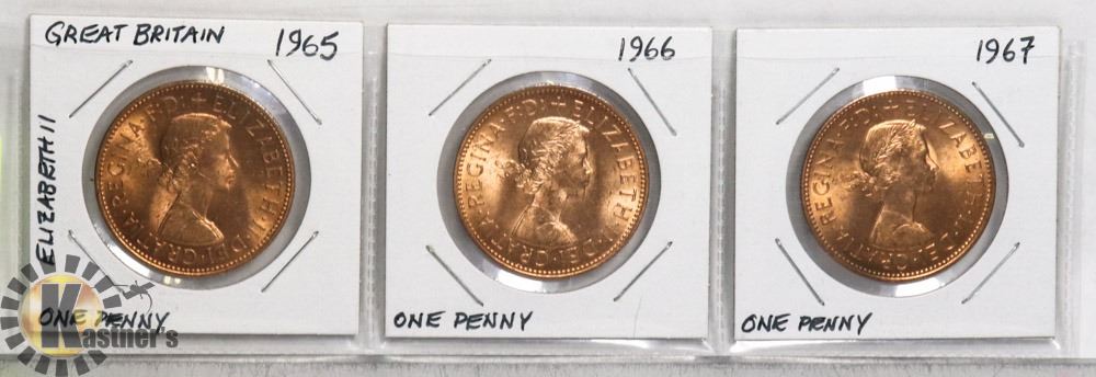 LOT OF 3 LARGE BRITISH PENNIES 1965, 1966 & 1967