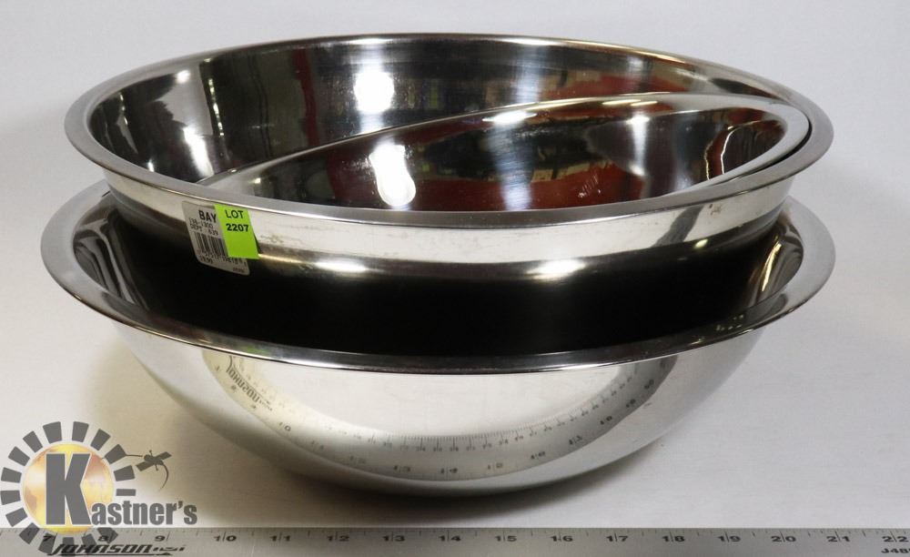 LOT OF 3 LARGE STAINLESS STEEL MIXING BOWLS