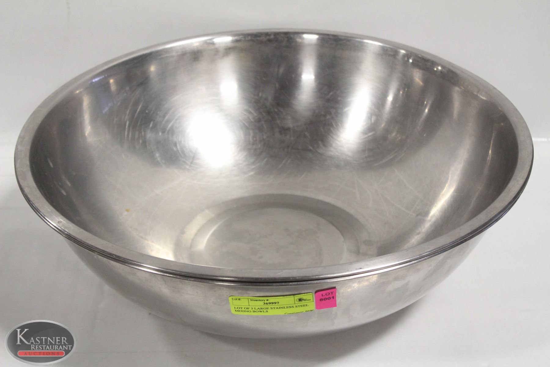 LOT OF 3 LARGE STAINLESS STEEL MIXING BOWLS