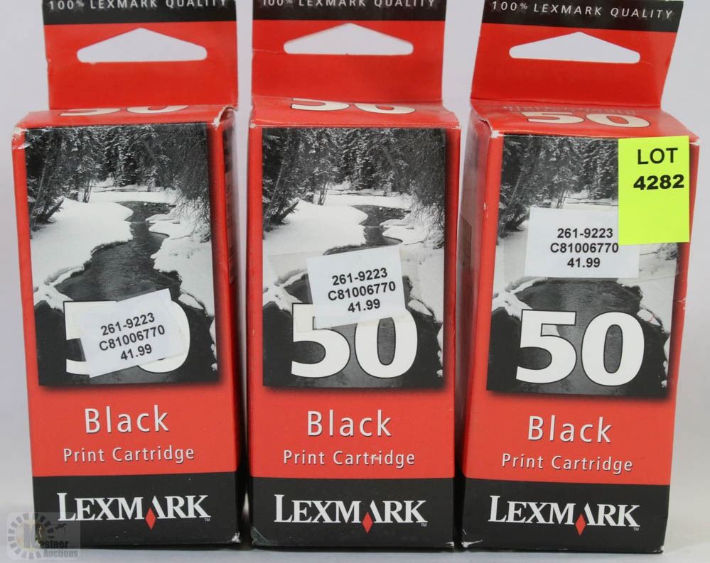 LOT OF 3 LEXMARK 50 BLACK PRINT INK CARTRIDGES