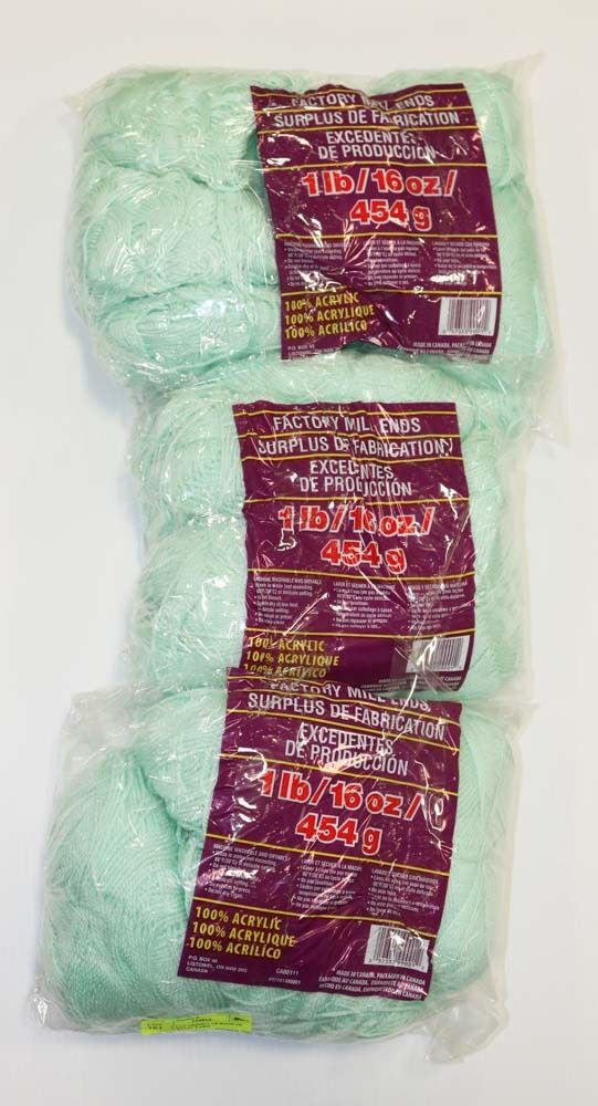 LOT OF 3 LT GREEN 1 LB BAGS OF 100% ACRYLIC YARN